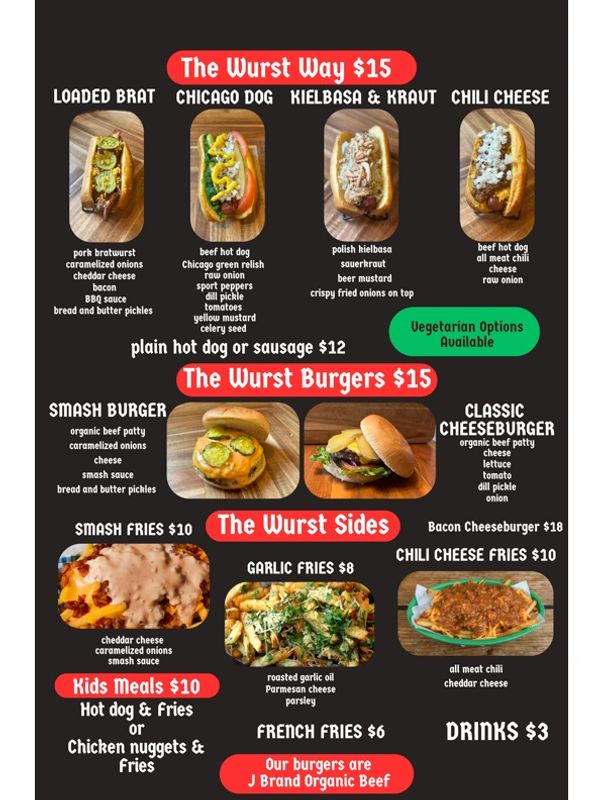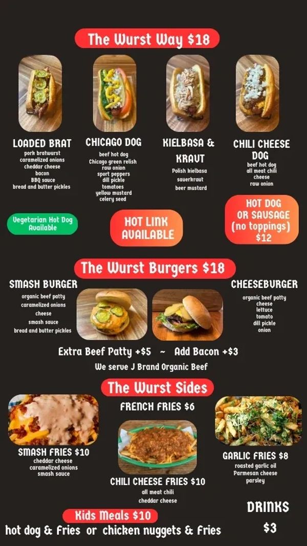 When you miss the restaurant, you can still get The Wurst Food. Text (707) 595-0064 or email wurstcater@gmail.com for more info.